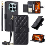 Étui portefeuille élégant pour Xiaomi Redmi Note 15 Pro 4G avec design losange sophistiqué. Comprend un anneau boucle décoratif, support intégré, 5 emplacements cartes et poche monnaie. Livré avec dragonne courte et bandoulière ajustable de 145cm.
