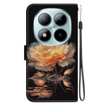 Elegante Brieftasche mit goldenem Pfingstrosendruck für Ihr Xiaomi Redmi Note 15 Pro 5G. Raffiniertes Klappdesign mit Ständerfunktion, Kartenfächern und praktischer Handschlaufe. Umfassender Schutz, der Stil und Funktionalität vereint.