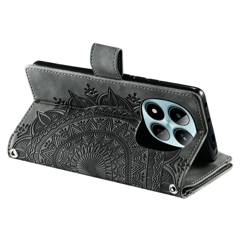 Elegante Brieftasche aus PU-Leder mit Mandala-Muster für das Xiaomi Redmi Note 15 Pro 5G. Verfügt über mehrere Kartenfächer, einen faltbaren Ständer, einen sicheren Magnetverschluss und eine praktische Handschlaufe.