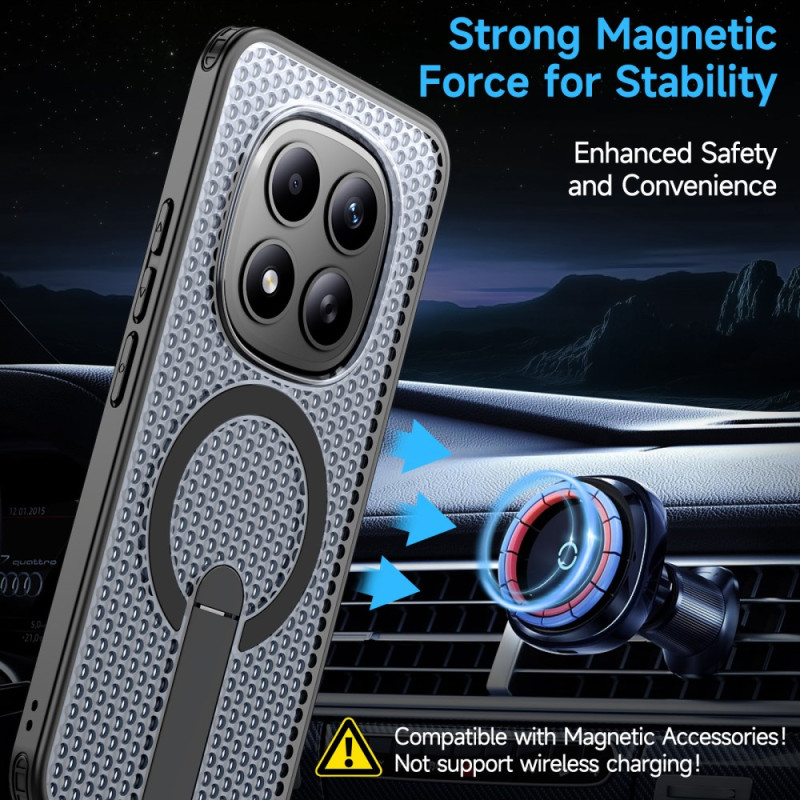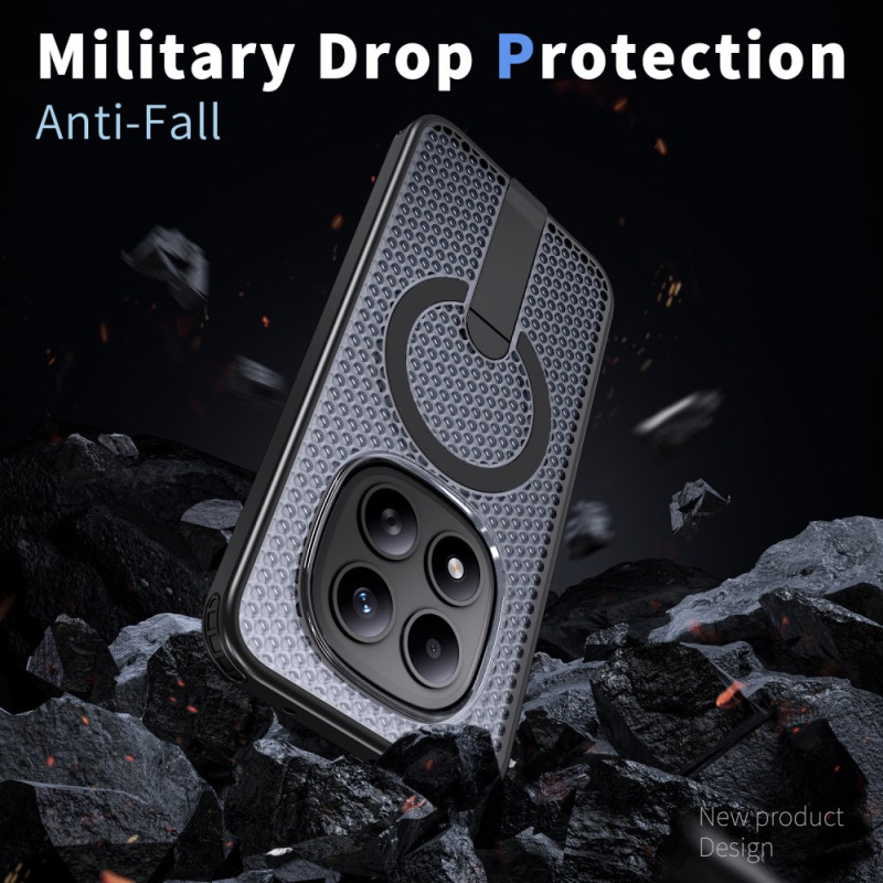 Protégez votre Xiaomi Redmi Note 15 Pro 5G avec cette coque magnétique au design texturé moderne. Dotée d'une béquille intégrée pliable et d'un système de ventilation 3D pour une dissipation thermique optimale. Compatible avec les accessoires magnétiques.