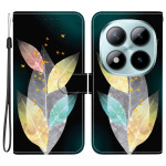 Schützen Sie Ihr Xiaomi Redmi Note 15 Pro Plus 5G stilvoll mit dieser eleganten Brieftasche mit Klappe, die mit einem bunten Blättermuster verziert ist. Ausgestattet mit Kartenfächern, einer Ständerfunktion und einer abnehmbaren Handschlaufe für den einfachen Transport.