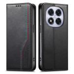 Elegante Brieftasche aus PU-Leder mit dreifarbigen Nähten für Xiaomi Redmi Note 15 Pro Plus 5G. Inklusive 2 Kartenfächern, 1 Geldbörse, Freisprecheinrichtung und Magnetverschluss. Wird mit seitlichem Gummiband für einen sicheren Griff geliefert.