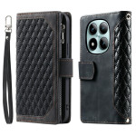 Elegante Brieftasche aus PU-Leder mit aufgenähtem Rautenmuster für Xiaomi Redmi Note 15 Pro Plus 5G. Ausgestattet mit mehreren Kartenfächern, einem Reißverschlussfach und einer Ständerfunktion. Sicherer Magnetverschluss und praktische Handschlaufe im Lieferumfang enthalten.