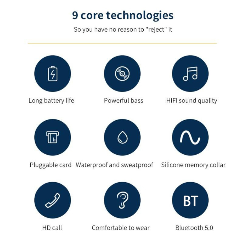 Mit diesen kabellosen Ohrhörern mit Nackenbügel können Sie Ihre Musik und Anrufe über den Controller steuern.